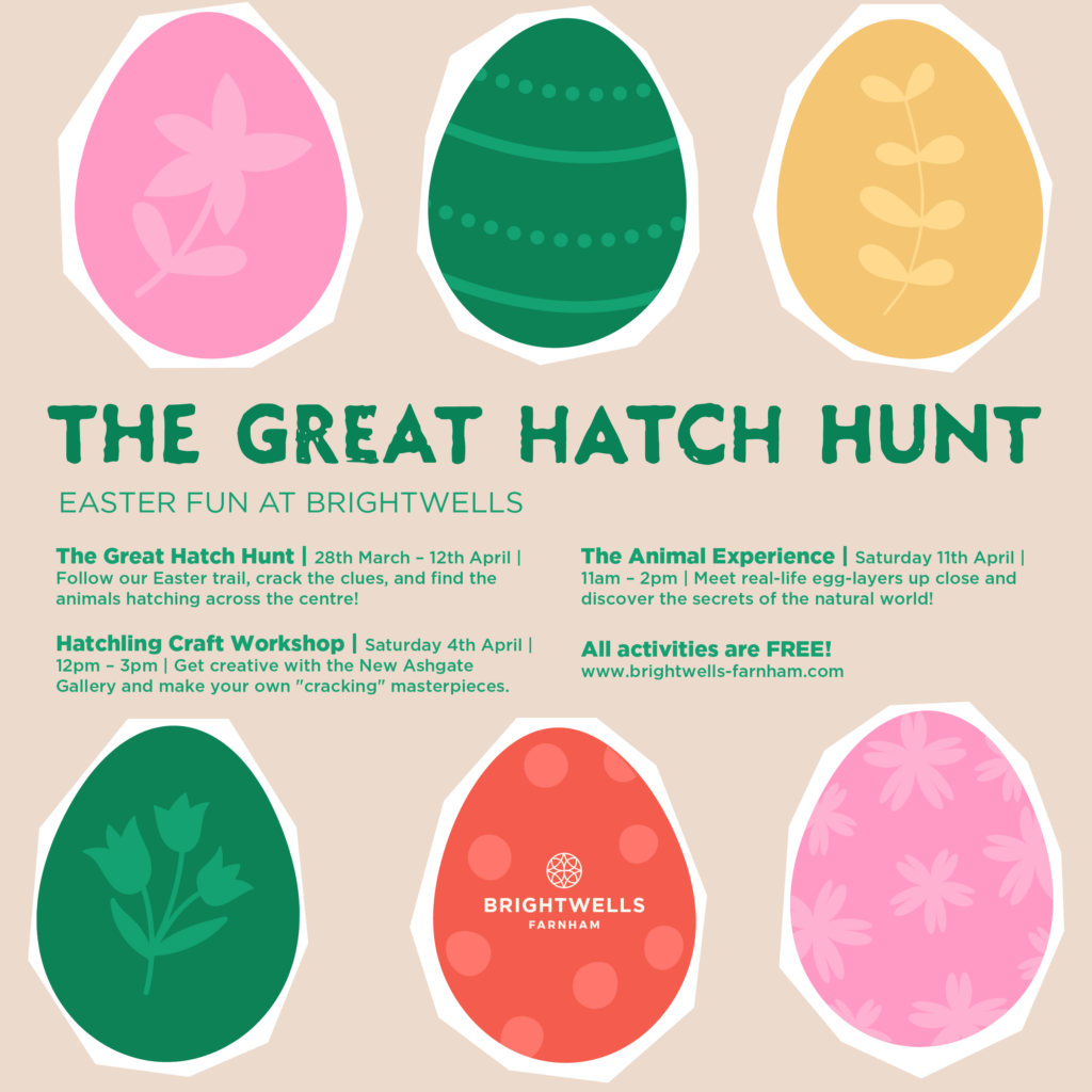 What's On The Great Hatch Hunt 28th March - 12th April Farnham Bee Trail 6th - 13th March Brightwells & Co, Creative Space From 7th May 2025